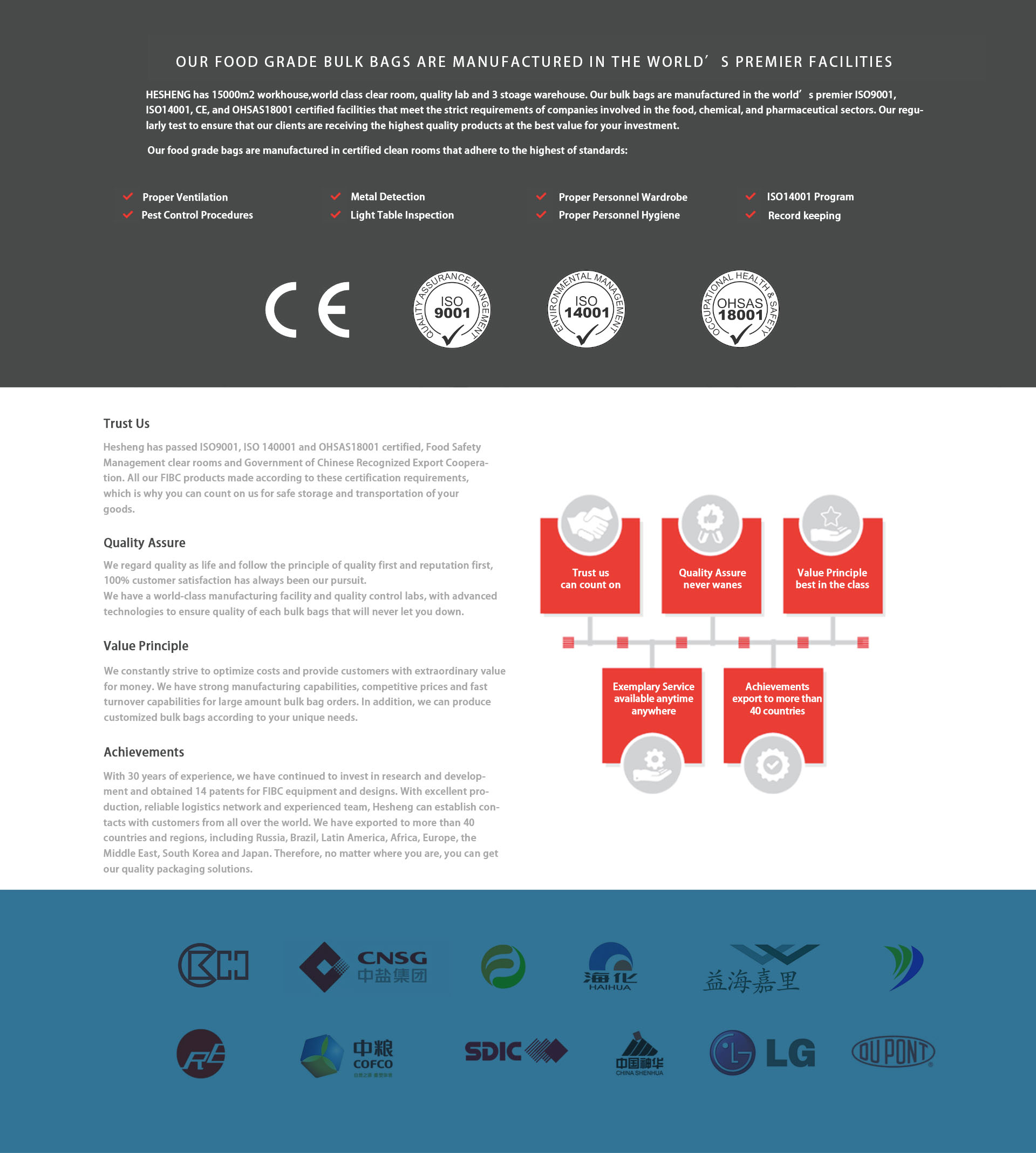 تعتبر شركة Hebei Hesheng Plastic Products Co., Ltd إحدى الشركات الرائدة في مجال تصنيع العبوات البلاستيكية في الصين مع مجموعة منتجات متنوعة تضم فيبك والأغشية والمواد الخام PP لأكثر من 30 عامًا.